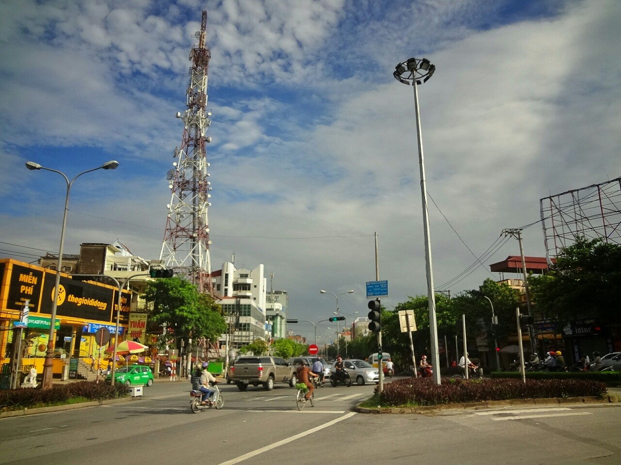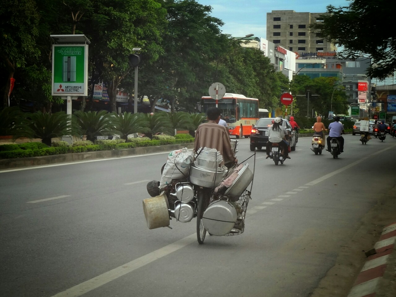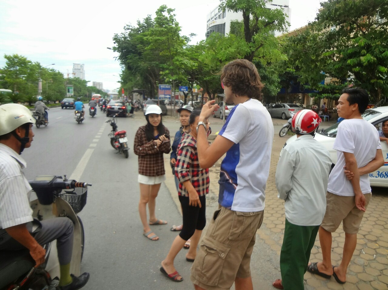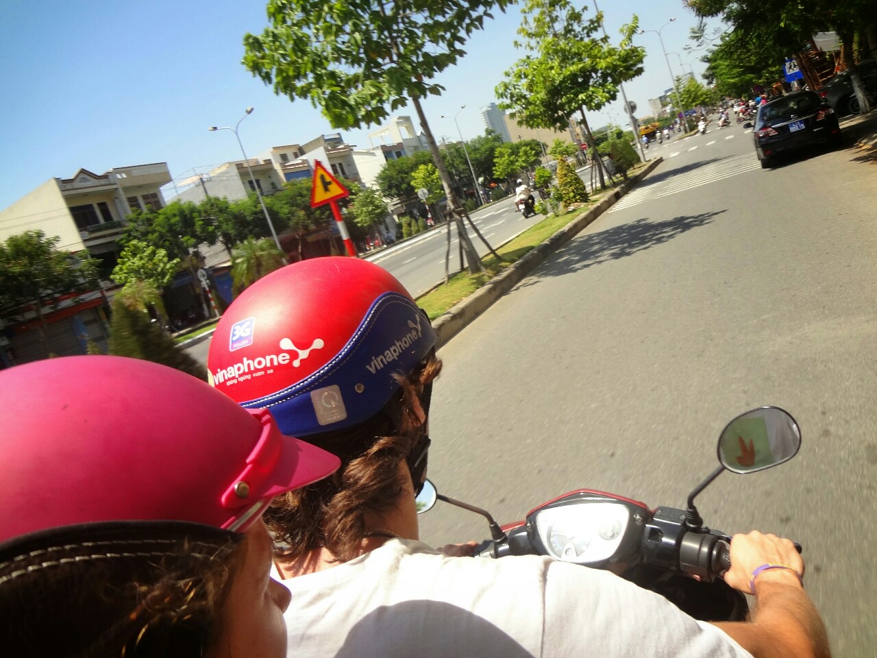 Here we also found the smallest roundabout. The traffic in Vietnam flows with some improvisation all the time. Blinking lights are probably additional equipment of vehicles because they're not used. And the most important part is honk. The wear out of the part of steering wheel for honking shows the frequency of using it.