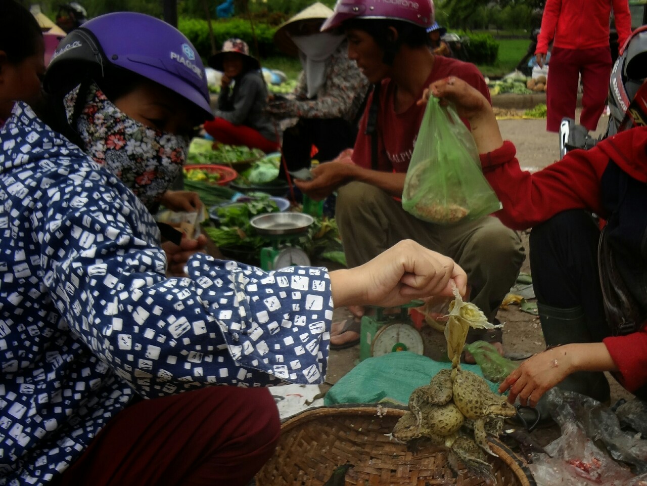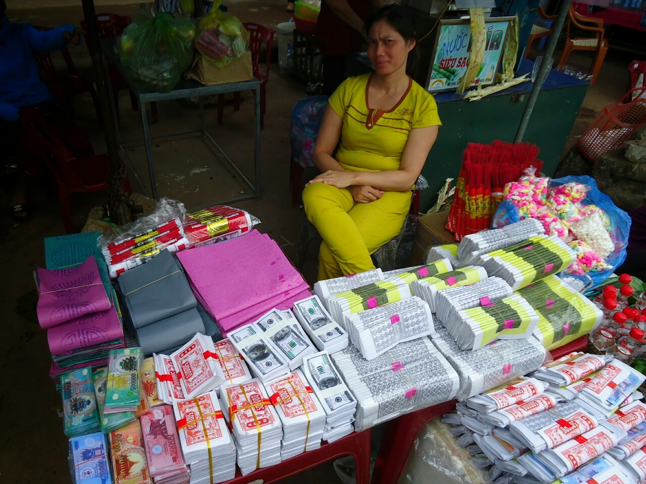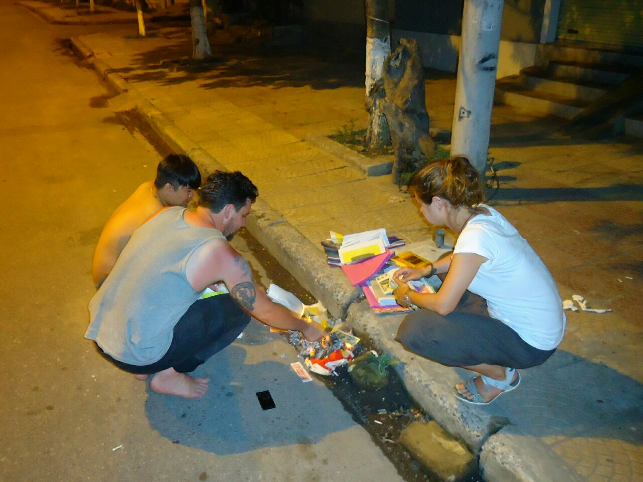 Next stop was, a bit unexpected, Dong Hoi. Here we get to know more about budhist rithual of donation. First they put food, candies, fruits and fake money to the street. Some food then they throw on the road but money they burn. Such money you can buy right on the market place.