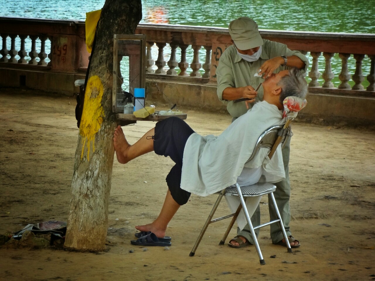 Life in Vietnam is happening under the open sky. For a new haircut you'll have to sit just in the middle of the street. The food is also the most pristine and cheapest on the streets...