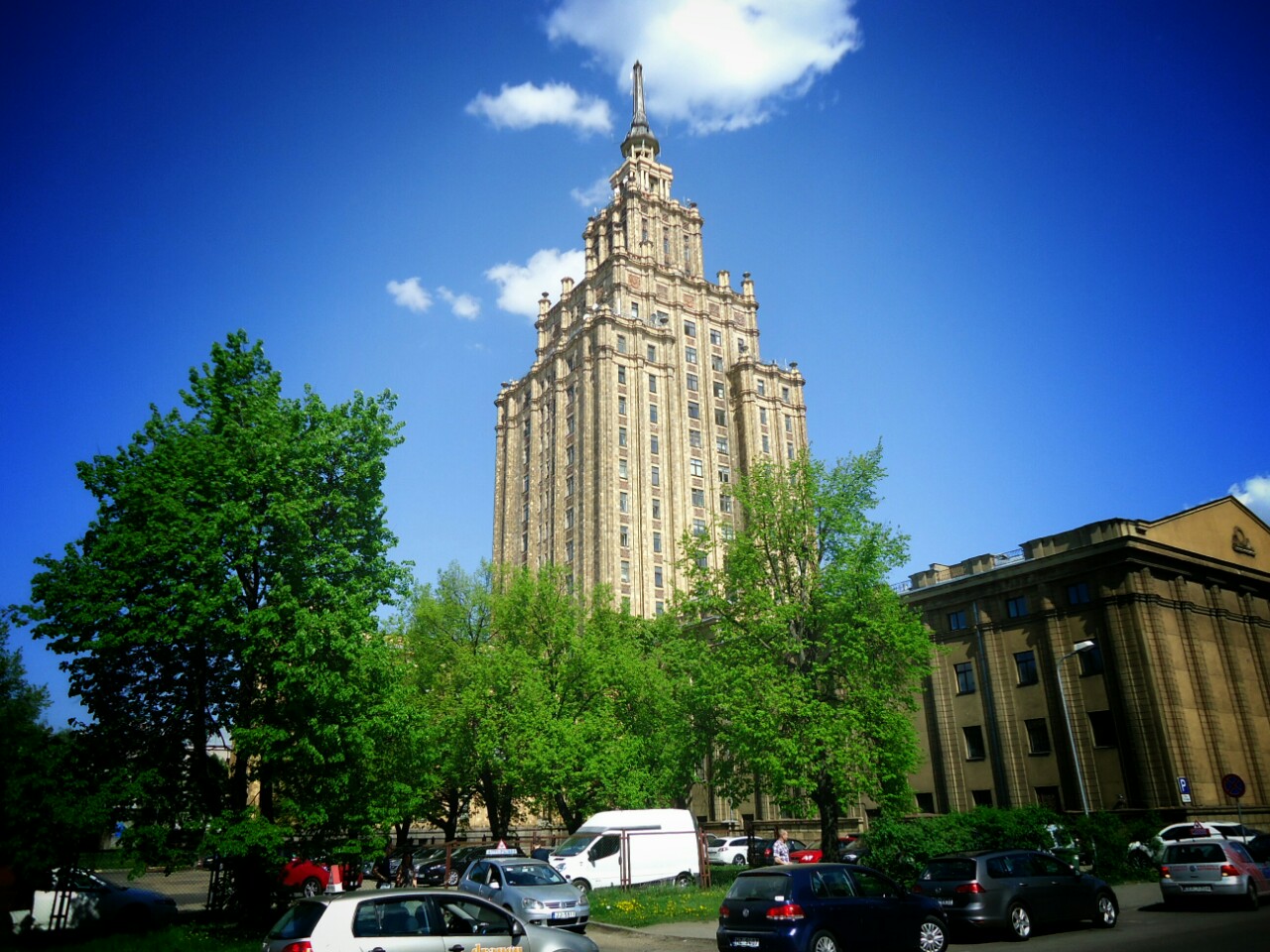 I thought I have a Deja Vu, when I saw a building on photo below. I already saw something like that. Oh, yes, Palace of Culture and Science (more details in article about Warsaw). It's a sample of tipical Stalinist architecture. Later I saw much more such buildings in Moscow.