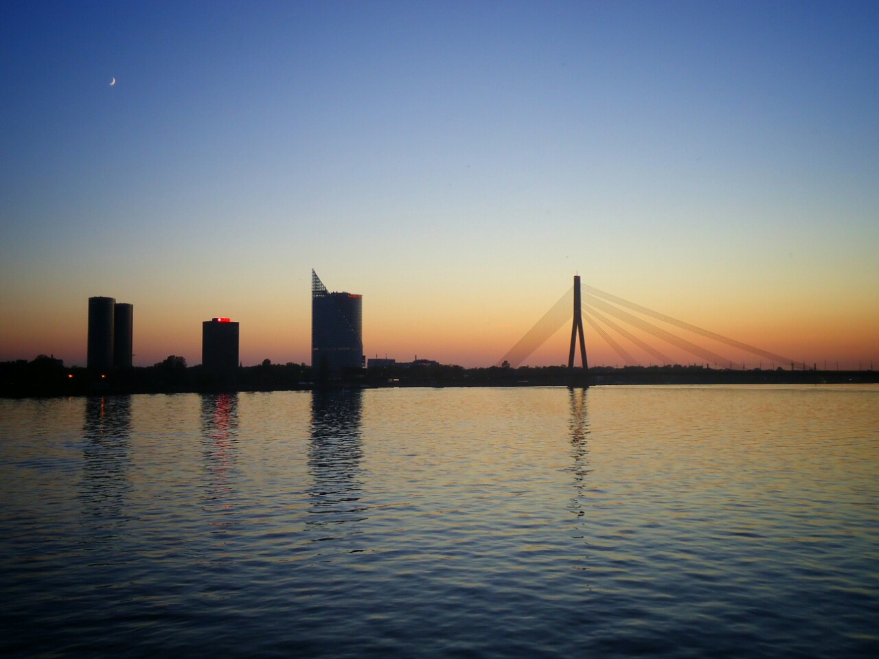 A night skyline over Daugava river: