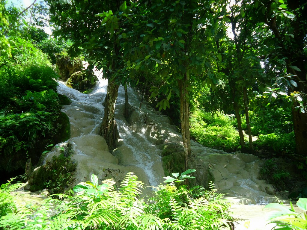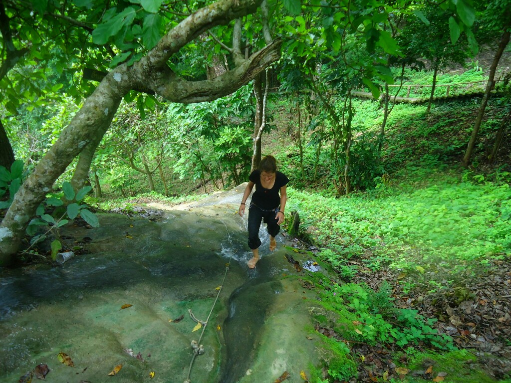 Lime stone does not only make rocks white and nice looking in contrast with green jungle but also not slippery. It takes some time before you adjust to the fact that you can step on the wet rock whithout the fear of falling.