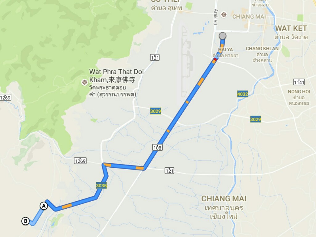 So, how to get there? Unfortunatelly waterfall is located around 60 kilometres away from Chiang Mai to the north. The cheapest way to get there is by motorbike. You can rent it for 99 baht per 24 hours. You'll need around 3 litres of gasoline for the way there and back and still stay on the safe side. Expect to pay around 25 baht per litre.
