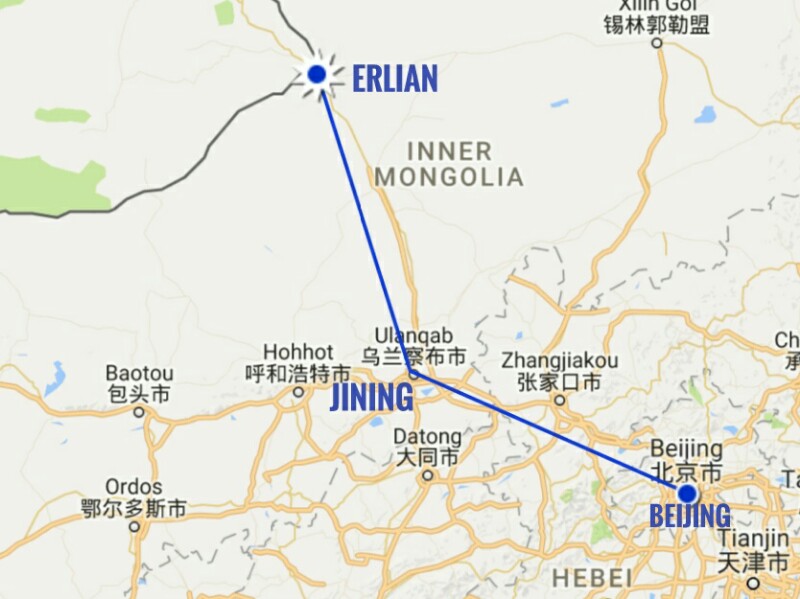 You can check chinese train timetables using websites like ctrip.com or chinahighlights.com and even book tickets in advance. There should be a direct train from Erlian to Beijing, but at the time of my trip it was unavailable. So I bought a train ticket to Jining South and from there further to Beijing. Taking the cheapest tickets it meant I had to sit. To Jining South cost me 50.50 RMB and took me 4 hours. After that I had some time to strech my legs go around Jining for couple of hours. Then I took a train to Beijing, which cost me 53.50 RMB and needed 6 hours to get there.