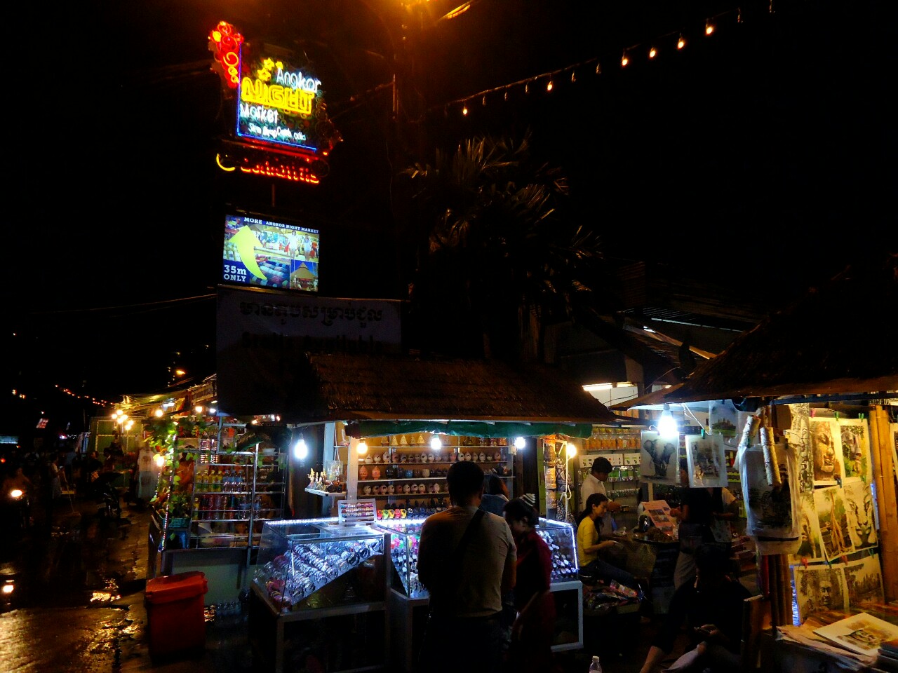 Siem Reap je znan po nočni tržnici. Zdela se nama je bolj urejena, kot to na kar sva bila do sedaj navajena podnevi. Mogoče pa samo v temi vidiš manj umazanije...
