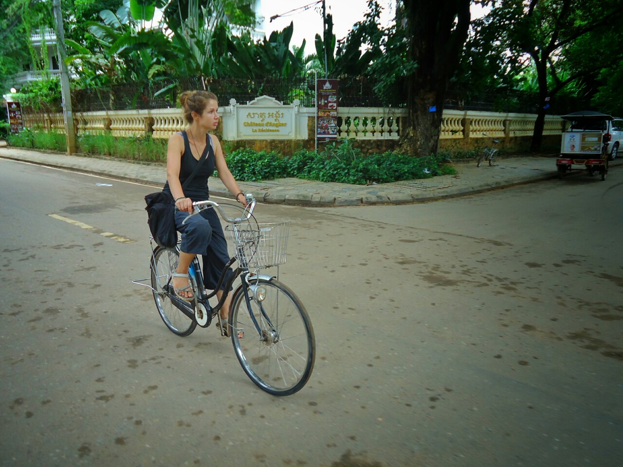 Tudi Siem Reap sam po sebi, je vreden ogleda in je ponudil vse, kar sva v Phnom Penhu pogrešala. Je sproščen in pristen, zahodnjaška kultura ga še ni popolnoma okužila. Mesto je obvladljivo peš, idealno pa je najeti kolesa. Za en dan se jih dobi za 1$ in če imaš več sreče, kot jaz se ti sploh ne predre zračnica. Kaj storiti če se ti, in je izposojevalnicaže zaprta? Odgovor je slika spodaj desno!