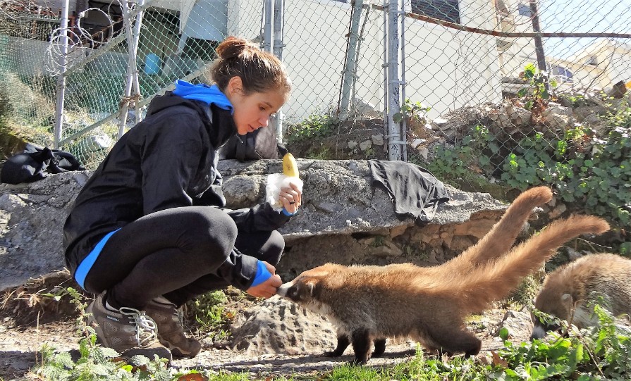 Če sedaj pogledam nazaj, sva imela luxus. Tri dni sva imela svoje stanovanje (imela tuš, ki v teh mestih ni bil popolnoma samoumeven), bila locirana v mestu in bila nekje na pol poti, do vseh, nama zanimivih, atrakcij. To so bili v večini primerov seveda vrhovi, saj kaj drugega mesto ni imelo za ponuditi. Spomnim se enega, precej dolgega pohoda, po žgočem soncu, kjer sva oba z Alešem čakala, da prideva na vrh. Ob čudovitem razgledu sva si želela privoščiti malico. Seveda sva prišla do vrha, a ostala brez malice. Jaz sem namreč zagledala nosate medvede (rakunom podobne živali) in bila tako navdušena, da sem popolnoma pozabila na hrano. Moje jabolko se je skotalilo po hribu navzdol. Aleš kot džentelman jo je šel iskat. Ti prebrisani medvedki pa so v tistem času izmaknili Aleševo vrečko s sendviči. Zatem je Aleš našel jabolko. Tako se je namesto s sendviči, moral zadovoljiti s polovico jabolka in banano.